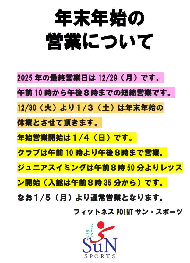 平素よりフィットネスPOINT サン・スポーツをご利用いただき、誠にありがとうございます。