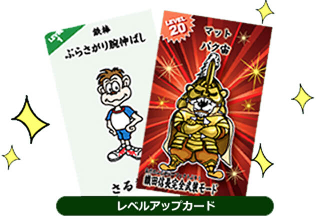 課題をクリアするとサン・スポーツのオリジナルキャラクターがえがかれたレベルアップカードがもらえます!