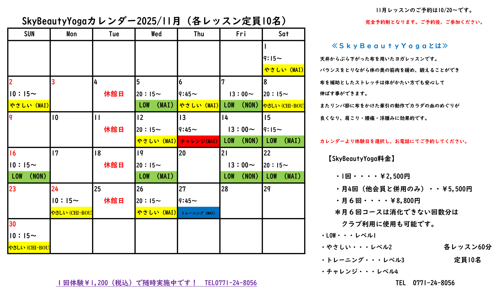 体験の方はお電話にてお申込みください。
